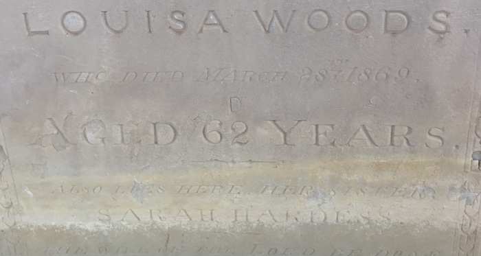 124. Louisa Woods d. 1869 @ 62 & her sister Sarah Hardess