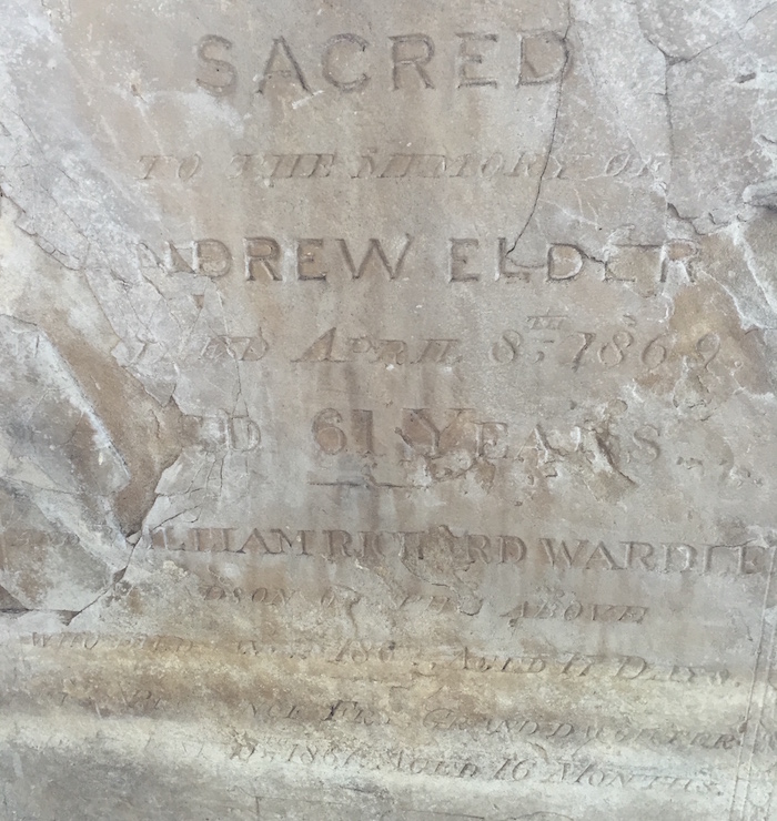 128. Andrew Elder d. 8 Apr 1869 @ 61 & his son William Richard Wardle d. 1862 @ 17 days