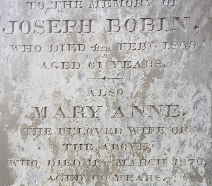 131. Joseph Bobin d. 4 Feb 1869 @ 61 & Mary Anne his wife d. 11 Mar 1870 @ 60