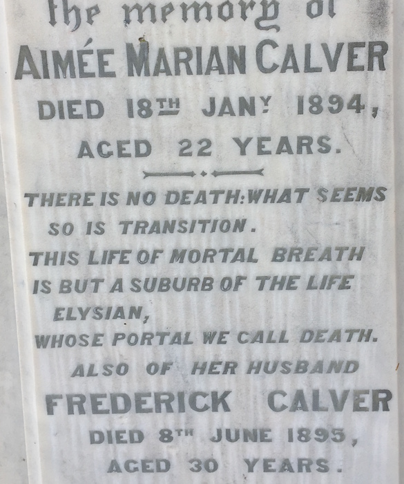 132. Aimee Calver d. 18 Jan 1894 @ 22 & Frederick Calver husband d. 8 June 1895 @ 30