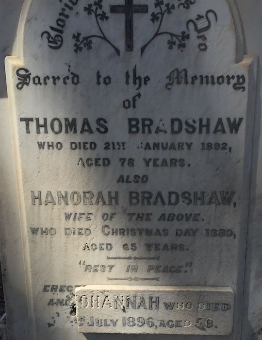 16. Thomas Bradshaw d. 1892 & wife Hanorah d. 1880