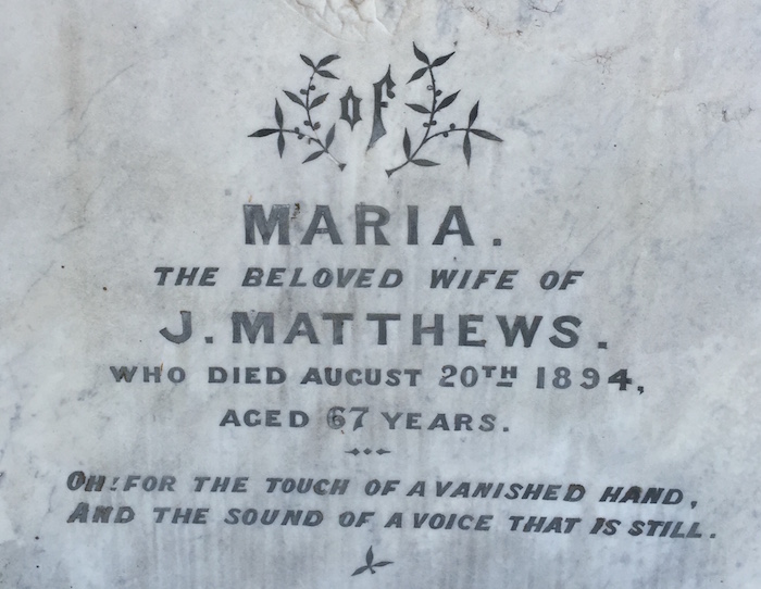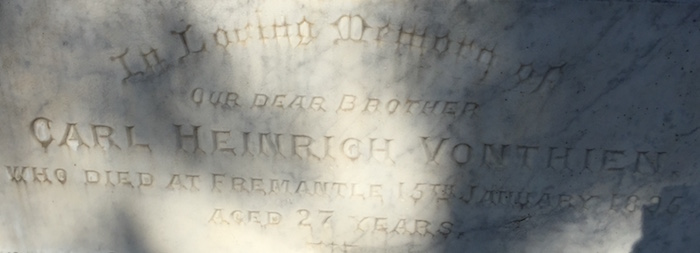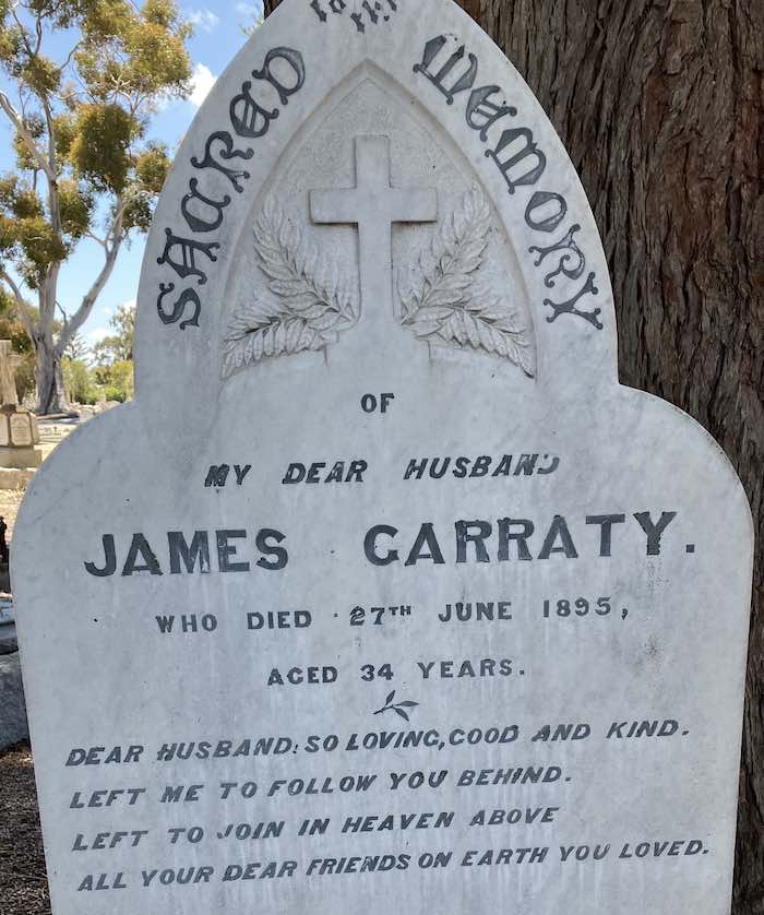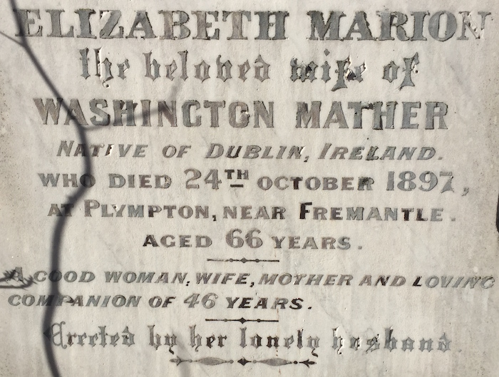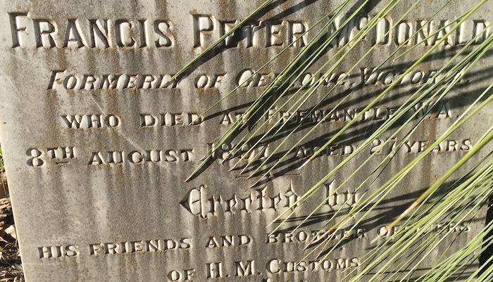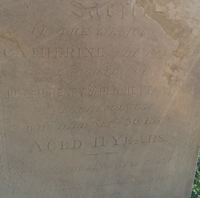 See also: the Heritage Garden at Fremantle Primary School which contains seven gravestones which should be in the Cemetery instead of in an insecure public area where they will very likely be damaged by a vandal or a psychopath.