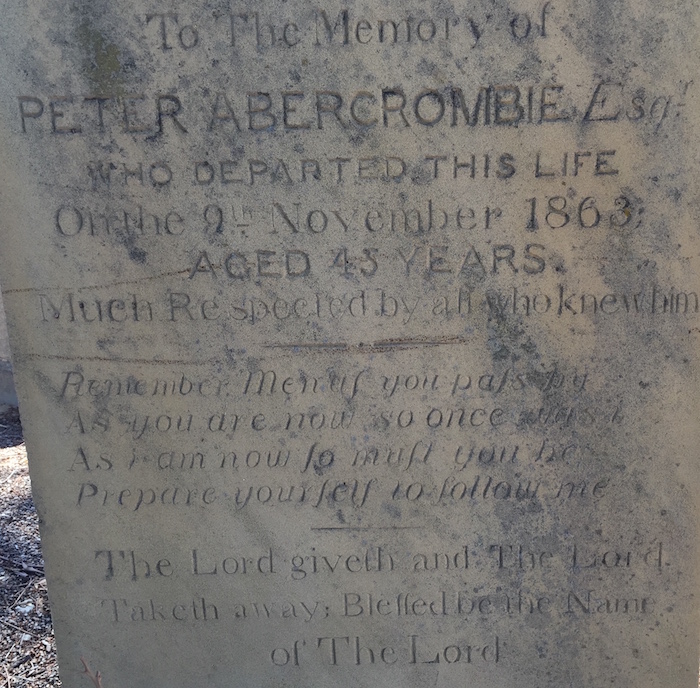 76. Peter Dandie d. 1867 'who (with the harbourmaster [James Harding]) and his crew was drowned in the port of Fremantle June 23rd 1867; having in the discharge of his duty put off to a ship in distress. To commemorate the event this stone was erected by public subscription.' Cf. 79 Price and Akers.