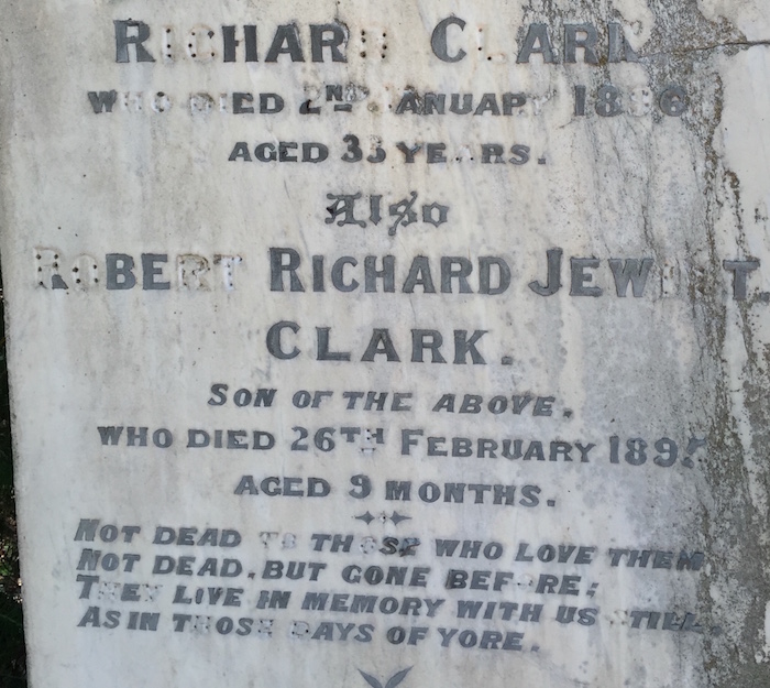 71. Minnie Isabel Reddell d. 1892 & Capt John Alfred Reddell d. 1899 @ c. 60 & their son Leslie Harcourt Reddell d. 1899, murdered near Broome by the mutinous crew of the Ethel. See the relevant page.