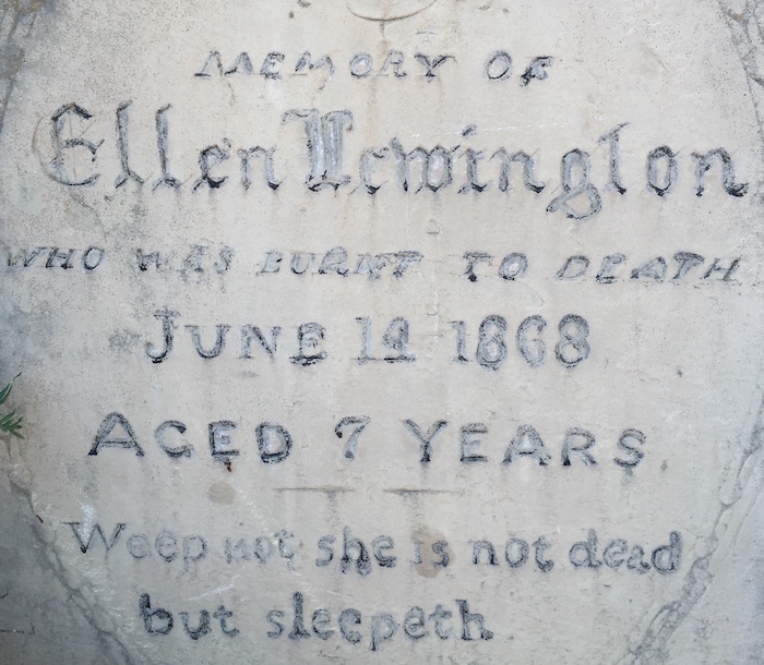 28. Ellen Lewington d. 1868 @ 7, burnt to death