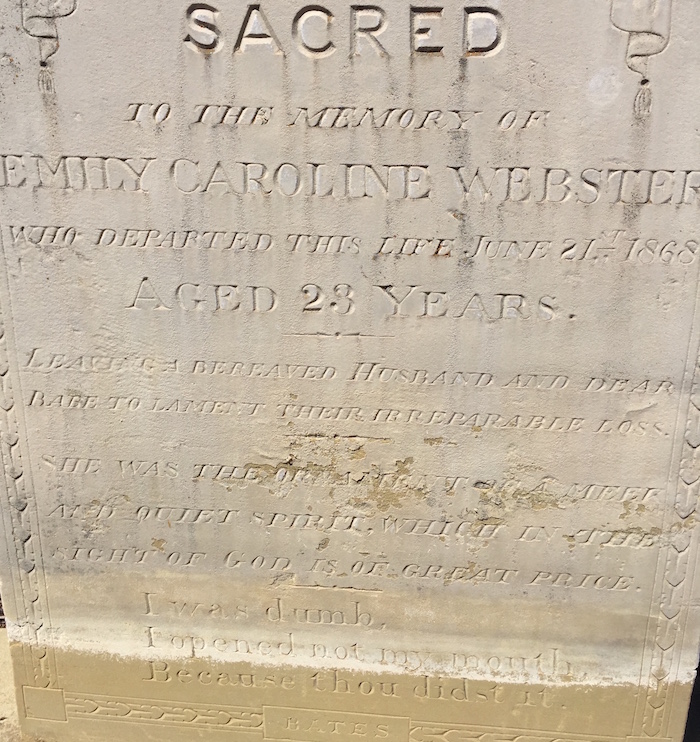103. Maria Elizabeth Webster d. 9Dec1862 @ 37, Webster's first wife (of three) daughter of W.J. Murray & Minnie Webster d. 17Dec1862 @ 9; v. page for Philip Webster