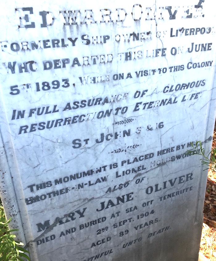 47. Edward Oliver d. 1893 also Mary Jane Oliver d. 1904 and 'buried' at sea