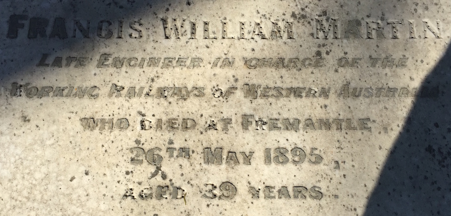49. Francis Martin, 'late engineer in charge of the working railways of WA', d. 1895 @ 39