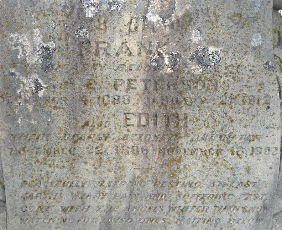 51. Frank Peterson, 1912 @ 23 (?) & Edith d. 1902 @ 6