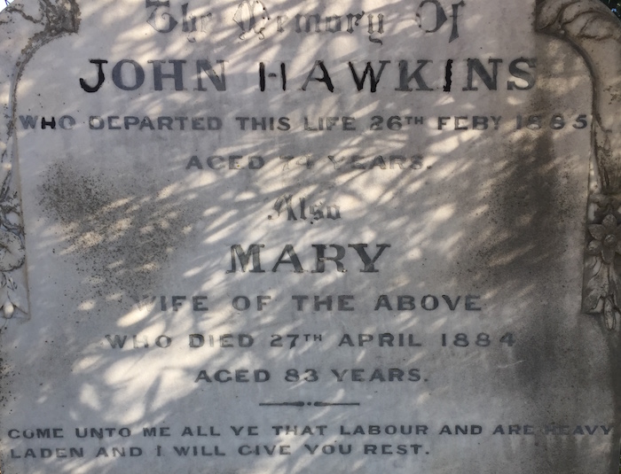60. John Hawkins d. 1885 @ 74 & Mary Hawkins d. 1884 @ 83