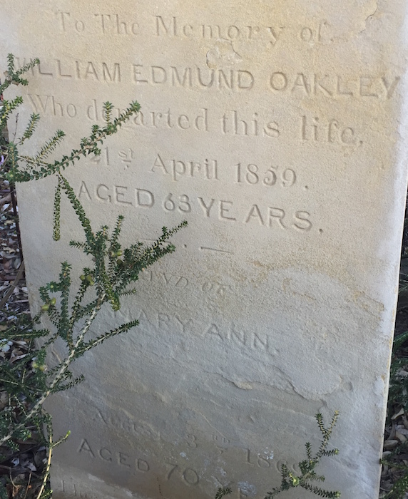 69. William Edmund Oakley d. 1859 @ 63 & Mary Ann d. 1969 @ 70 (This is the third-earliest date on this page; 1857, Robert Logue, is the earliest.)