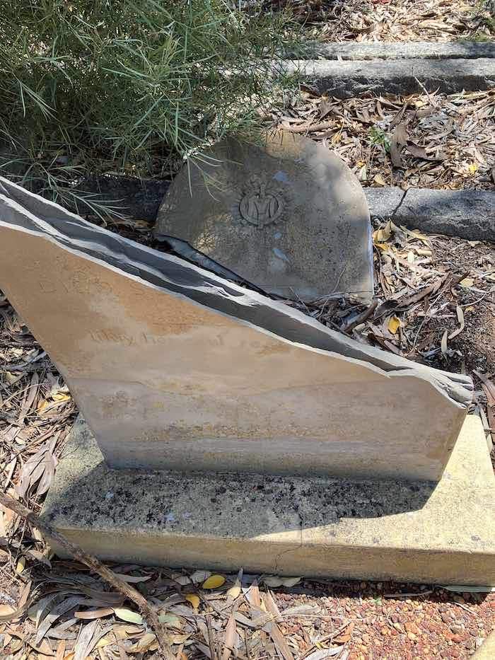 [The Metropolitan Cemeteries Board decided to give seven of the most precious stones for an installation at the Fremantle Primary School (on Brennan Street). They are in an unsecure, public space - only only block from the psychiatric ward of Fremantle Hospital in Alma Street - where they could and probably will be trashed by a psychopath or tagger vandal. The stones include the earliest Fremantle gravestone, which was placed in the Alma Street Cemetery on the grave of Mary Ann Morrell in 1832, and also the memorials to two of Henry Wray's children. These seven memorial stones should immediately be removed to the relative safety of the Fremantle Cemetery. They are supposed to represent the location of the cemetery which was formerly there, but only one of the stones (Morrell's) was actually at that cemetery. The others were first installed at the Skinner Street Cemetery.]