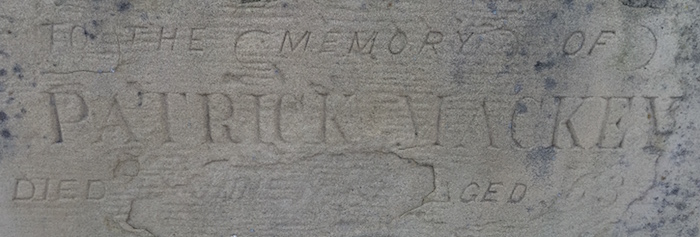 77. James McKay, d. 6 Sept 1878 @ 37; stone now illegible apart from the name