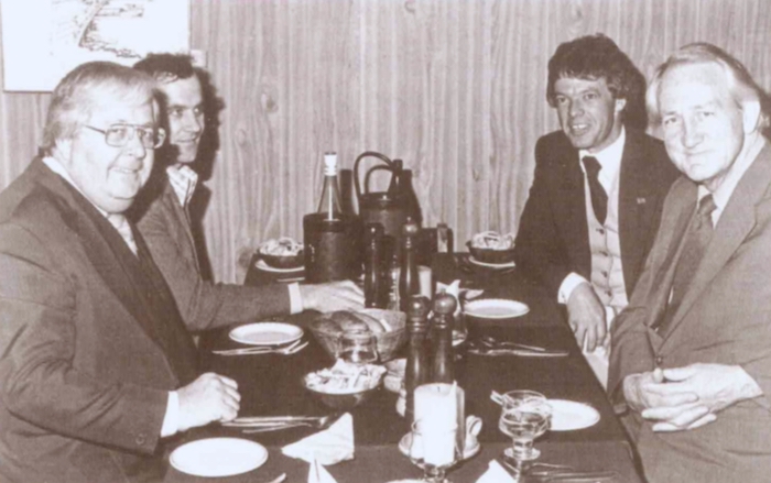 Tom Uren (front right) with Bill McKenzie (front left), 1980. [City of Fremantle LHC]