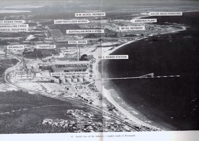 The Western Australian Government Railways is currently constructing a $7,000,000 railway terminus and marshalling yard at Robb Jetty, on the northern fringe of the industrial area. It will occupy 90 acres and there are already connecting rail links to Midland Junction and Kwinana. The terminus will handle both 3 feet 6 inches and 4 feet 8.5 inches gauges and will, when completed, link