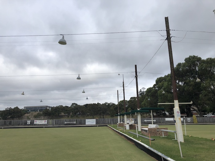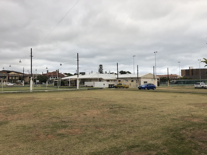 The green in the foreground is the site of the new Fremantle Park SCC building.