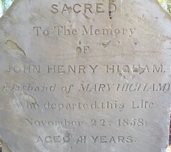 See also: John Henry Higham (1818-1858), Mary Higham (1819-1883), John Joseph (Jack) Higham, Edward Higham.