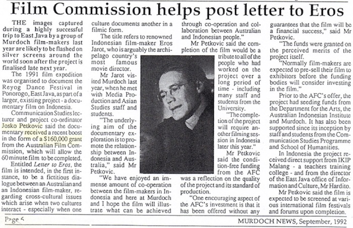 The narrative of Letter to Eros anchors itself in the ubiquitous discourse of love, written in transit during an “exotic” journey between East and West, between here and there, now and then, him and her, and between countless other oppositions which span the space of the logical Either-Or relationship. The film moves quickly from the Tropic to the Pole, from the internationalism of Sukarno and Tito to the ethno-cleansing bombardment of Dubrovnik.