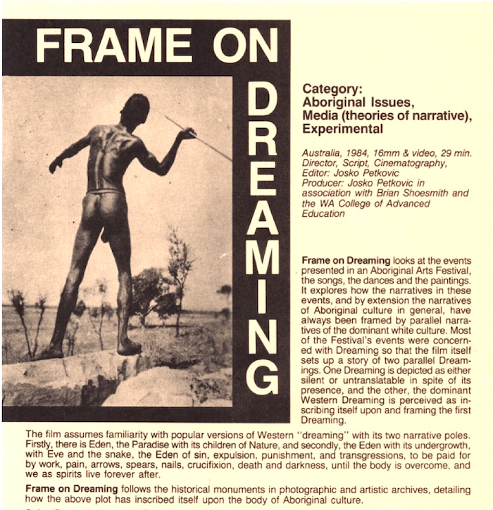 Frame on Dreaming (1984) short, Australia (MIFF 1985 )