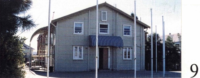 The building is a two storey timber framed construction, of simple form, with the access stairs to first floor on the outside of the building. The roof is corrugated asbestos cement sheeting and the external walls are clad in corrugated asbestos cement sheeting running horizontally. Both floors are of timber construction.