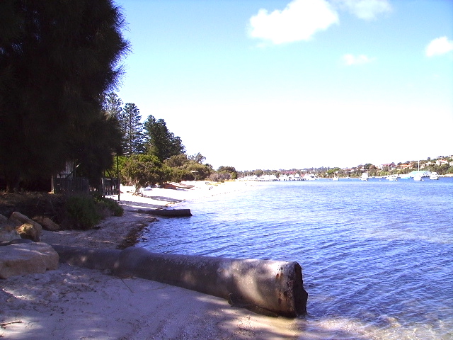 Just inshore from the river at this point is the North Fremantle cricket ground, the Gilbert Fraser Reserve. The pavilion can be glimpsed from the beach.