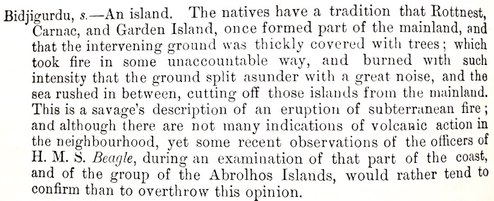 It was possible, 7000 years ago, when sea levels fell, to walk to what became Wadjemup island. See Nunn (below) and also G.F. Moore (1884/1978), as follows: