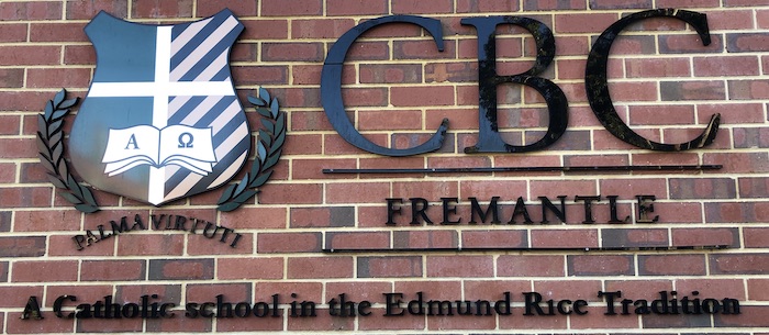 CBC is between High, Ellen and Stirling Streets, occupying most of the city block. The oldest building is Edmund Hall, on High St. The school uses Fremantle Park, which can be seen in this 1909 photo, as its playing fields. The school itself is left of centre. Fremantle Library Local History Collection image #1775 (cropped).