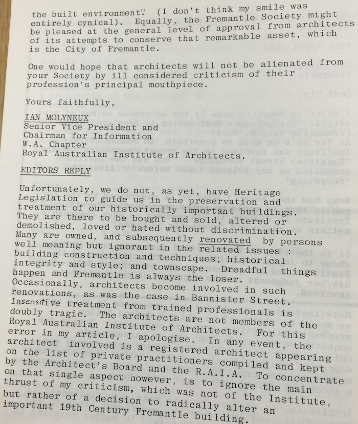 Fremantle Society > Newsletter > 1980v8n3