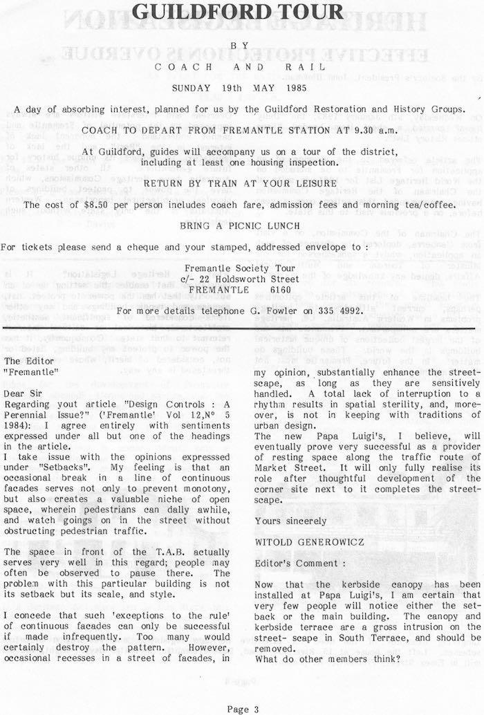 Fremantle Society > Newsletter > 1985v13n1