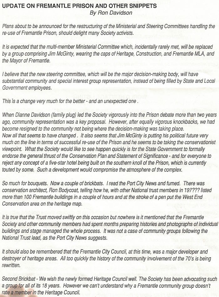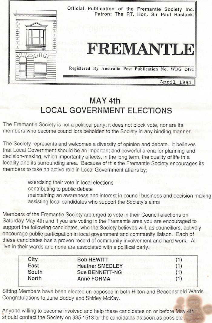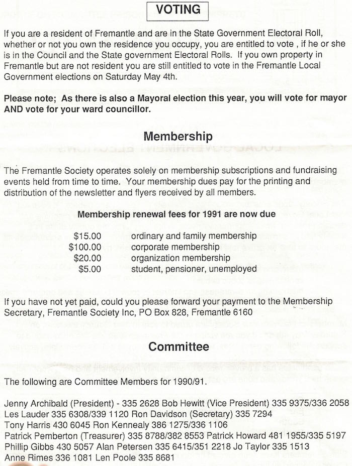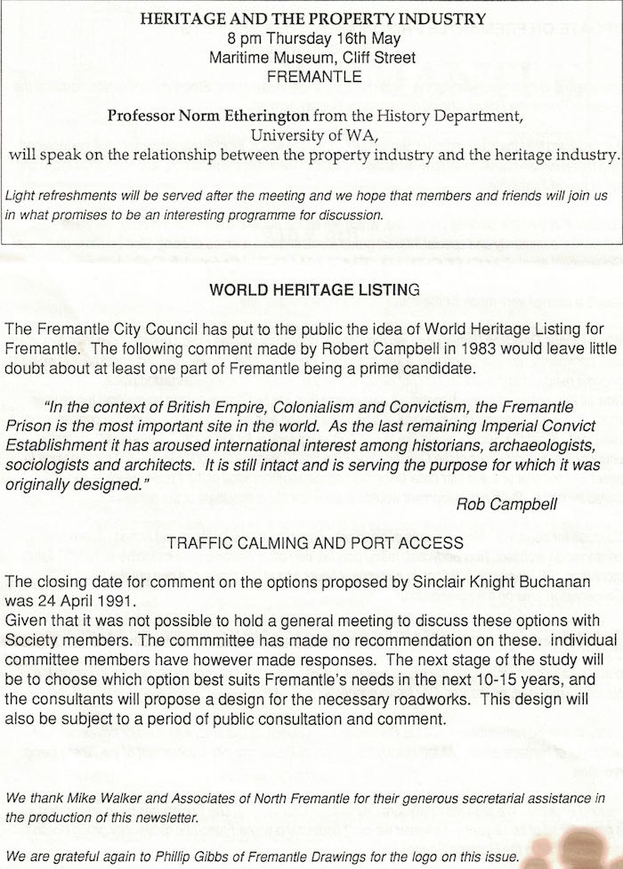 Fremantle Society > Newsletter > 1991April
