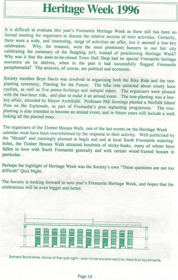 Fremantle Society > Newsletter > July 1996