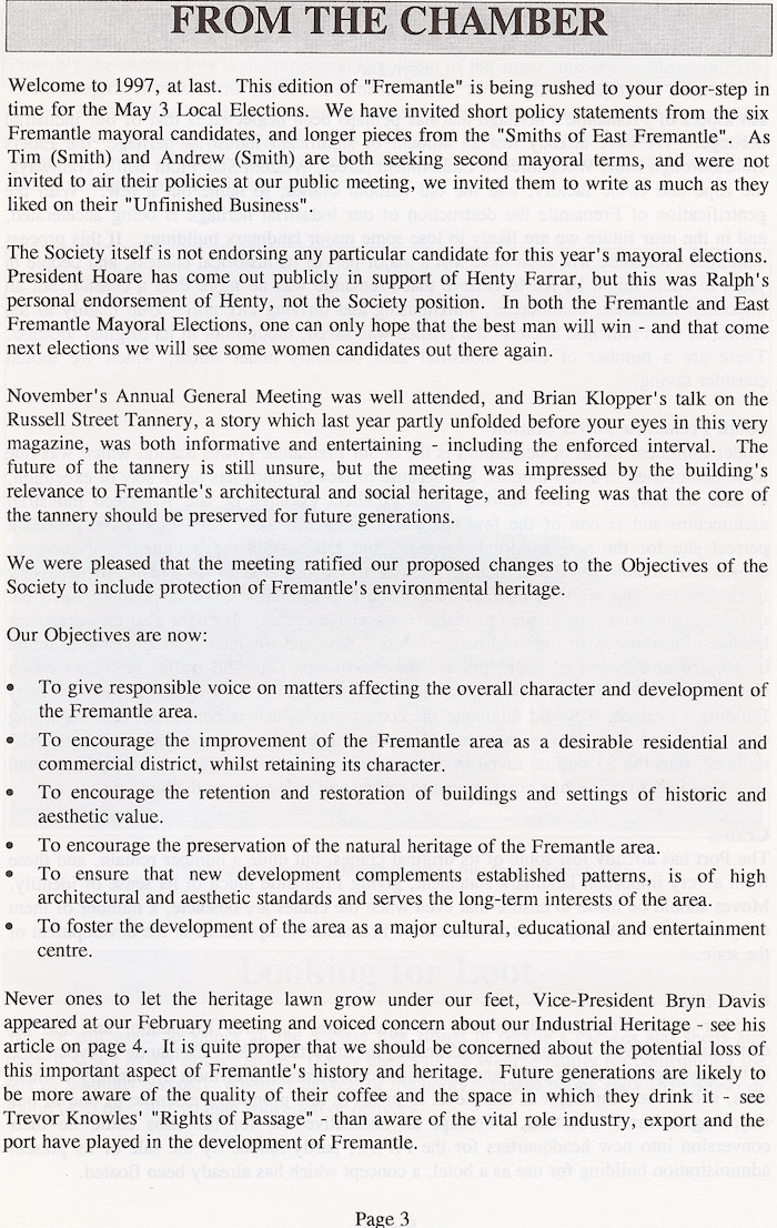Fremantle Society > Newsletter > May 1997