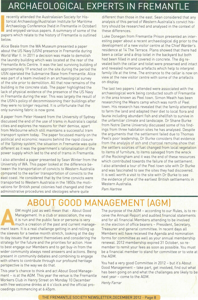 Fremantle Society > Newsletter > December 2012