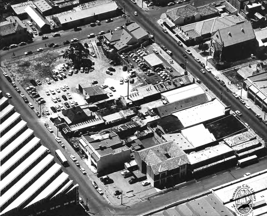 On this block bounded by Adelaide, Queen and Cantonment streets, on 15 December 1965, Charles Court opened council’s Westgate “Super Centre”, a transit orientated development with Bairds, Coles, and Walsh’s as key tenants. It was promoted as the ‘shopping mecca of the western and southern suburbs.’ It wasn’t long before Myer came to town and wanted something bigger and so within seven years the centre of gravity shifted to King’s Square and Westgate Mall went into decline with Myer (which opened 1 August 1972) and the adjacent Queensgate (1987) becoming the latest salvation of retail in Fremantle.