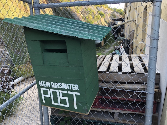 The previous territory of the Commonwealth of New Bayswater, in 2019 (during the second Fremantle Biennale), was on the Fremantle South Mole. The photo below is from the newbayswater.com website. See the FSN page for a comprehensive set of photos by Deanna Shanahan. See also my page for Dago Bay for the 'private beach' available to residents of the South Mole Resort.
