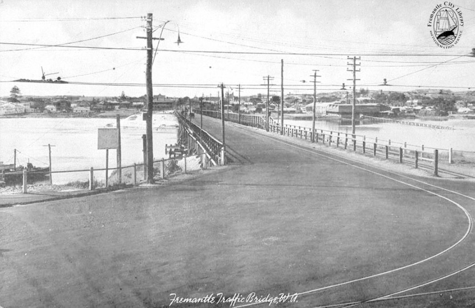 The photo above is of the Renovated Bridge seen from the upstream side, avec tram, c. 1908. This is no. 352 from the Fremantle Library Local History Collection.