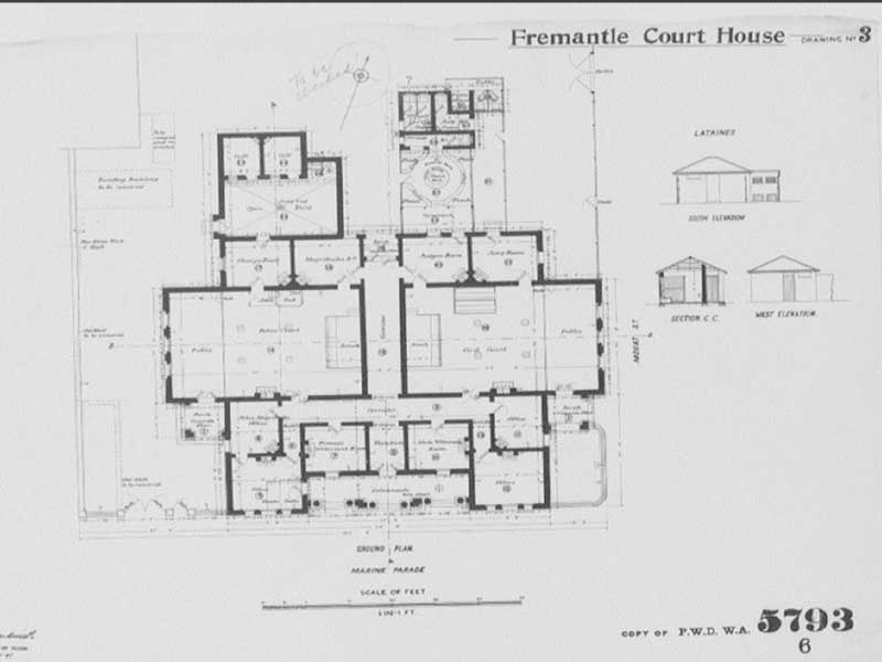 The area included the courthouse, the police station, accommodation buildings, the artillery drill hall, and the lock-up. The economic boom, related to the gold rush of the late 1890s in Western Australia allowed for Grainger’s architectural designs of the Federation Academic Classical style along with the distinctive Fremantle limestone and Cottesloe stone walls. The contractor who carried out the work was Thomas Bates.
