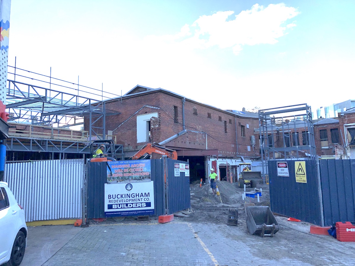 This is the exterior of what is now Manning Arcade. Note the balconies above the awning with the MT logo of the former Majestic Theatre.
