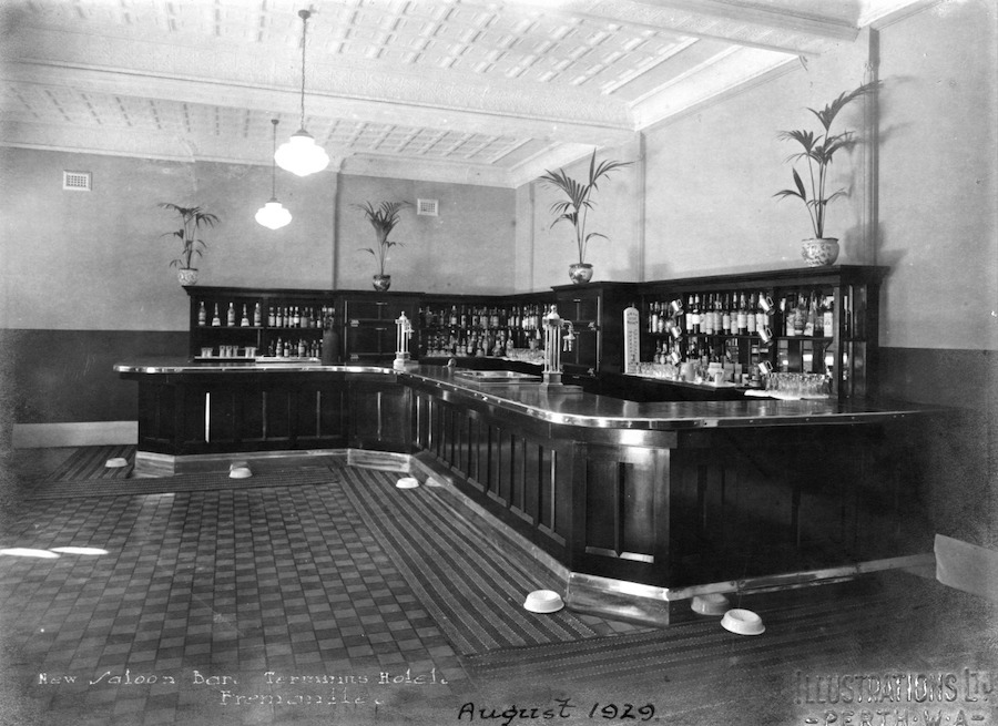 The original Pearlers Hotel was opened by Jarvis Hoult (an expiree who arrived in 1864 as Thomas Anderson) 1 July 1887 at 18 Pakenham Street, on the corner with Leake Street. It was rebuilt as the Terminus Hotel, to a design by Joseph Herbert Eales in 1897. The Swan Brewery acquired it around 1896, and certainly from 1905. For a period, it was Terminus Chambers (offices for people such as lawyers - Don Whittington, for example). Homeswest bought it in 1989.
