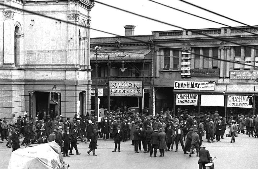 Nixon's studio at 7 William Street became the Wrightsons barbershop from 1933. It's still there, but only just. This photo shows it c. 1919.