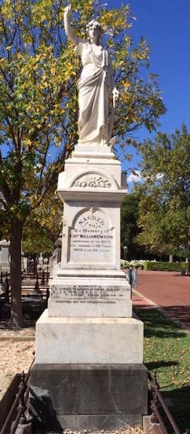 Captain William Owston (1824-1903) arrived in Fremantle on board the Mary, in 1851. He was born in Chatham, Kent, England 13 September 1824, and died 29 March 1903 in Fremantle, Western Australia, at 78 years of age. His body was interred in Cemetery Congreg-Portion Fremantle, Western Australia, Fremantle (source).