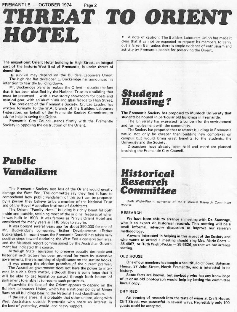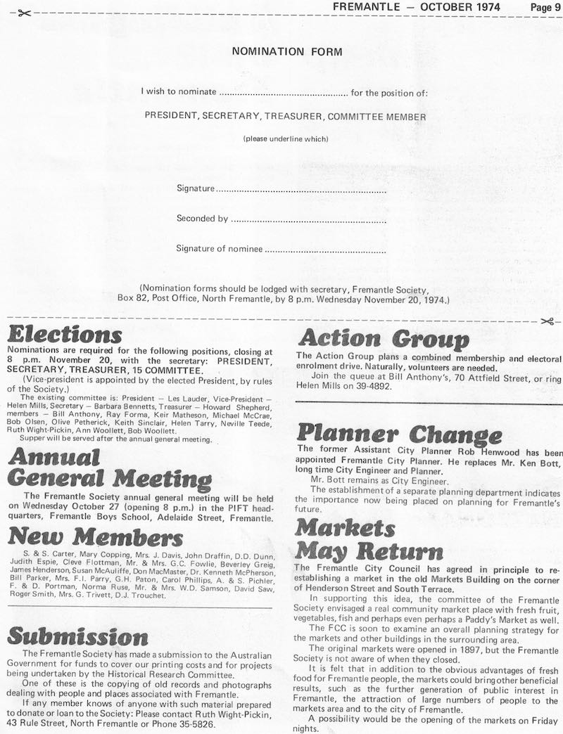 Fremantle Society > Newsletter > October 1974