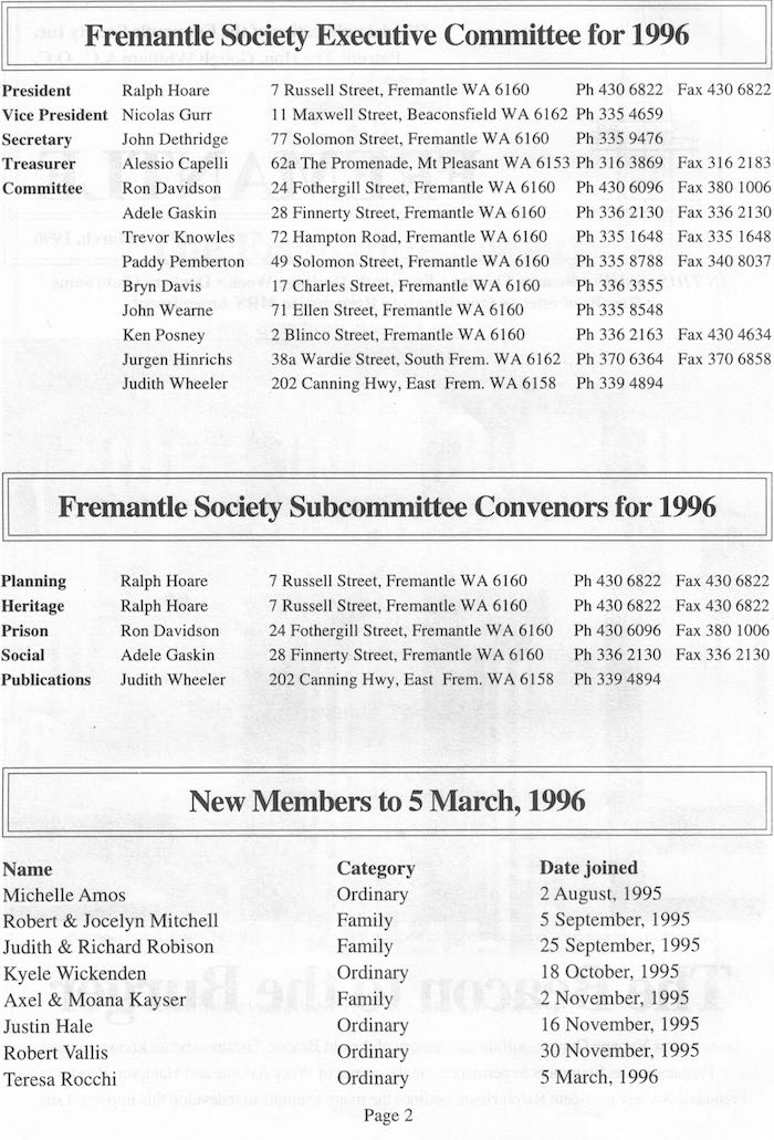 Fremantle Society > Newsletter > March 1996